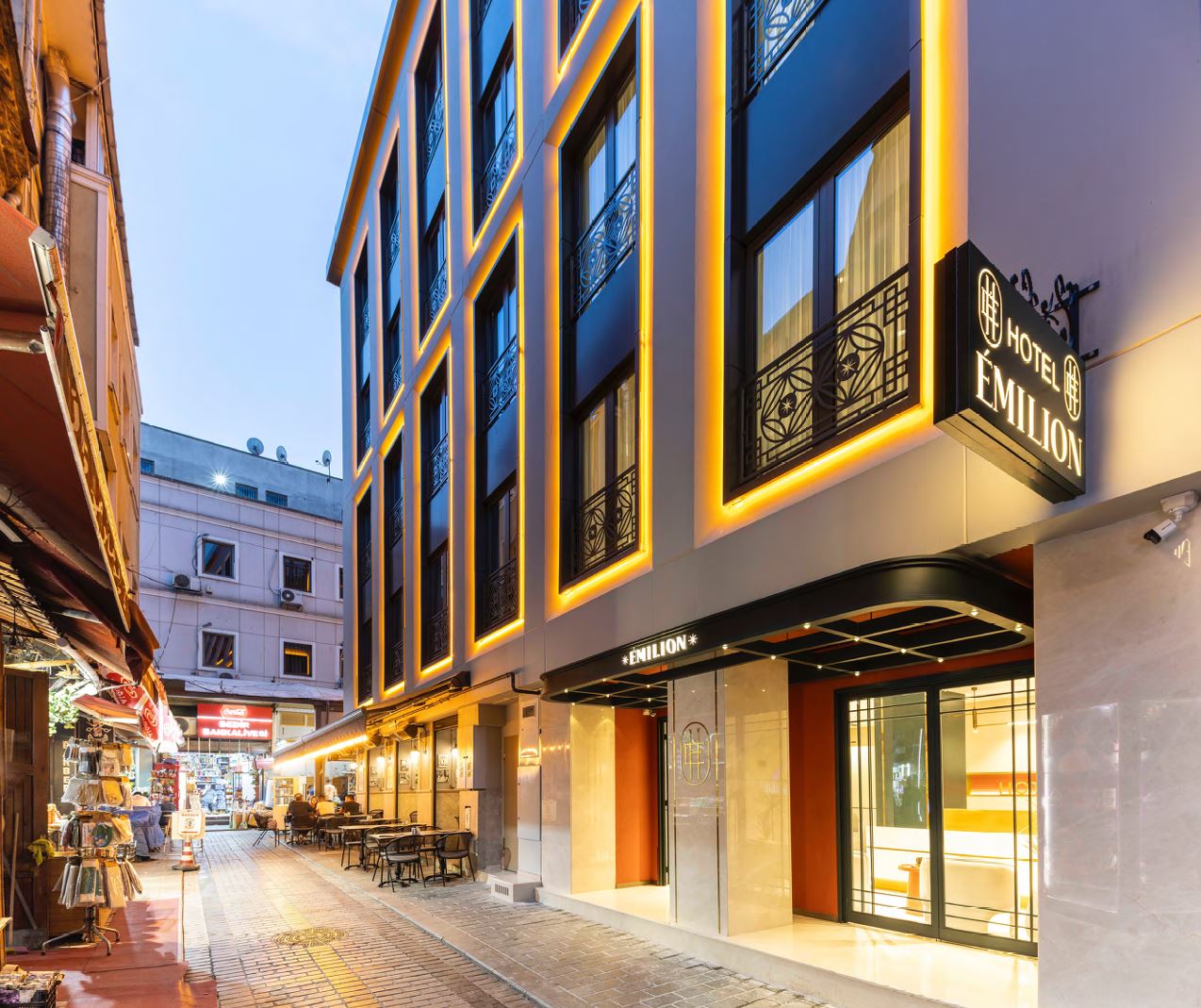Emilion Hotel, İstanbul’un kültürel merkezinde Sirkeci’de konumlanmış olup tarihi ve turistik noktalara kolay erişim sunar. CVS Project tarafından yenilenen bu otel, hem yerli hem yabancı ziyaretçilere konforlu bir konaklama deneyimi sağlar. Tasarım süreci, binanın bulunduğu bölgenin mimari karakterine duyarlı şekilde tamamlanmıştır.